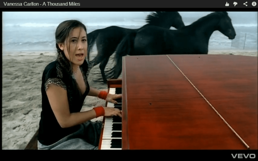 I love this song from when I was younger I have just been singing it on the karaoke in The Hall in Neil’s Art Session. It is Vanessa Carlton A Thousand Miles from 2002. It is from February 02 from when I was fifteen years old when I was in year ten when I was in my fourth year at Southlands School. The song came out and was released on Monday the 17th February of that year. I love listening to the song on my iphone in my music library with my Sony Headphones on when I am out and about walking.