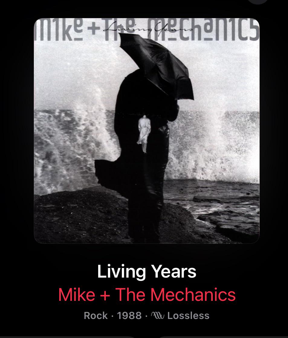 I love this song it is Mike And The Mechanics The Living Years from 1988 I have just been singing it on the karaoke. The song came out and was released in December 88 when I was only two years old when I was little. I love listening to the song on my iphone in my music library with my Sony Headphones on when I am out and about walking.