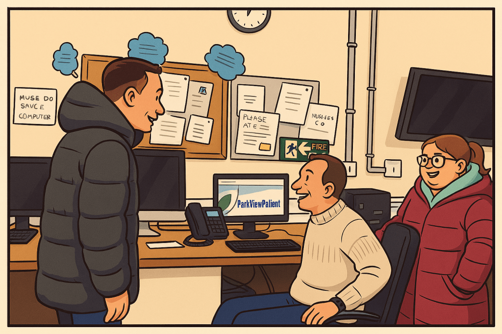 This is a cartoon version of me Laura and Graeme in Park View Project.