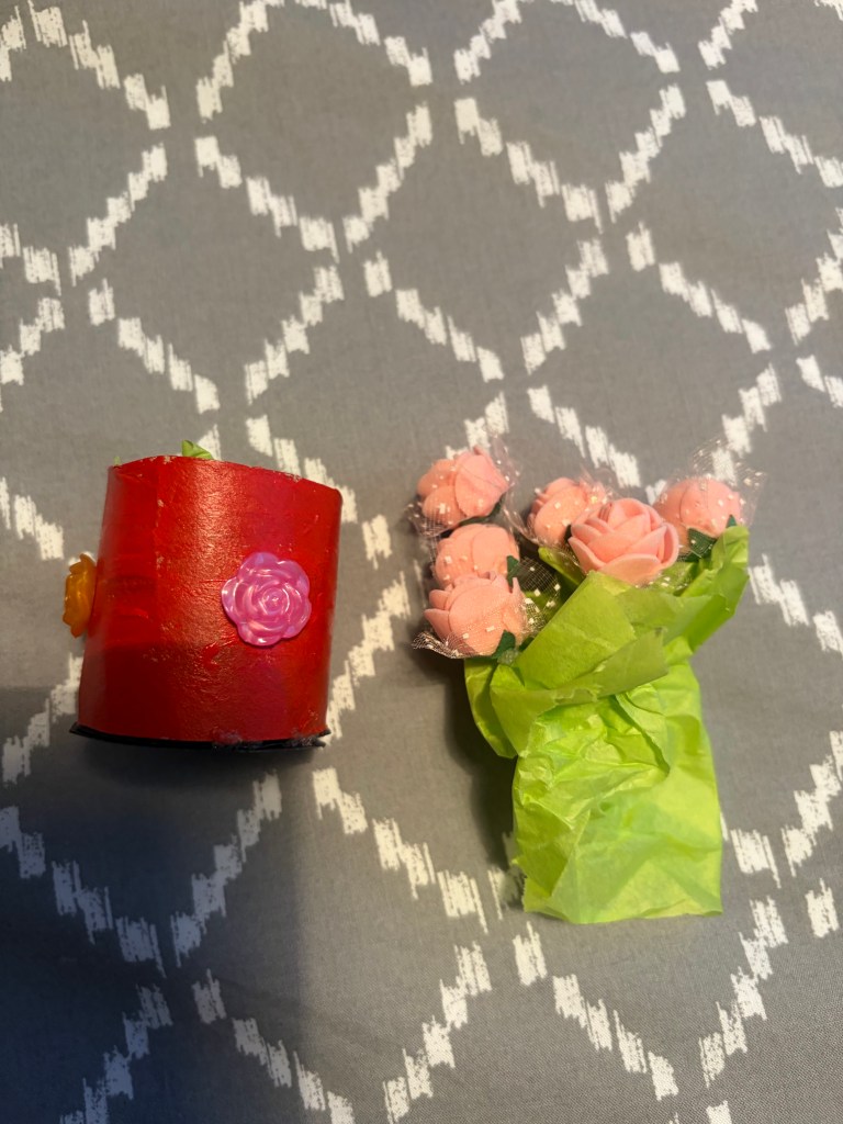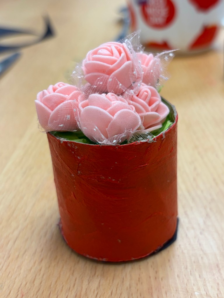 These’re my little pink flowers I made and designed in Arts and Crafts in The Hall yesterday.